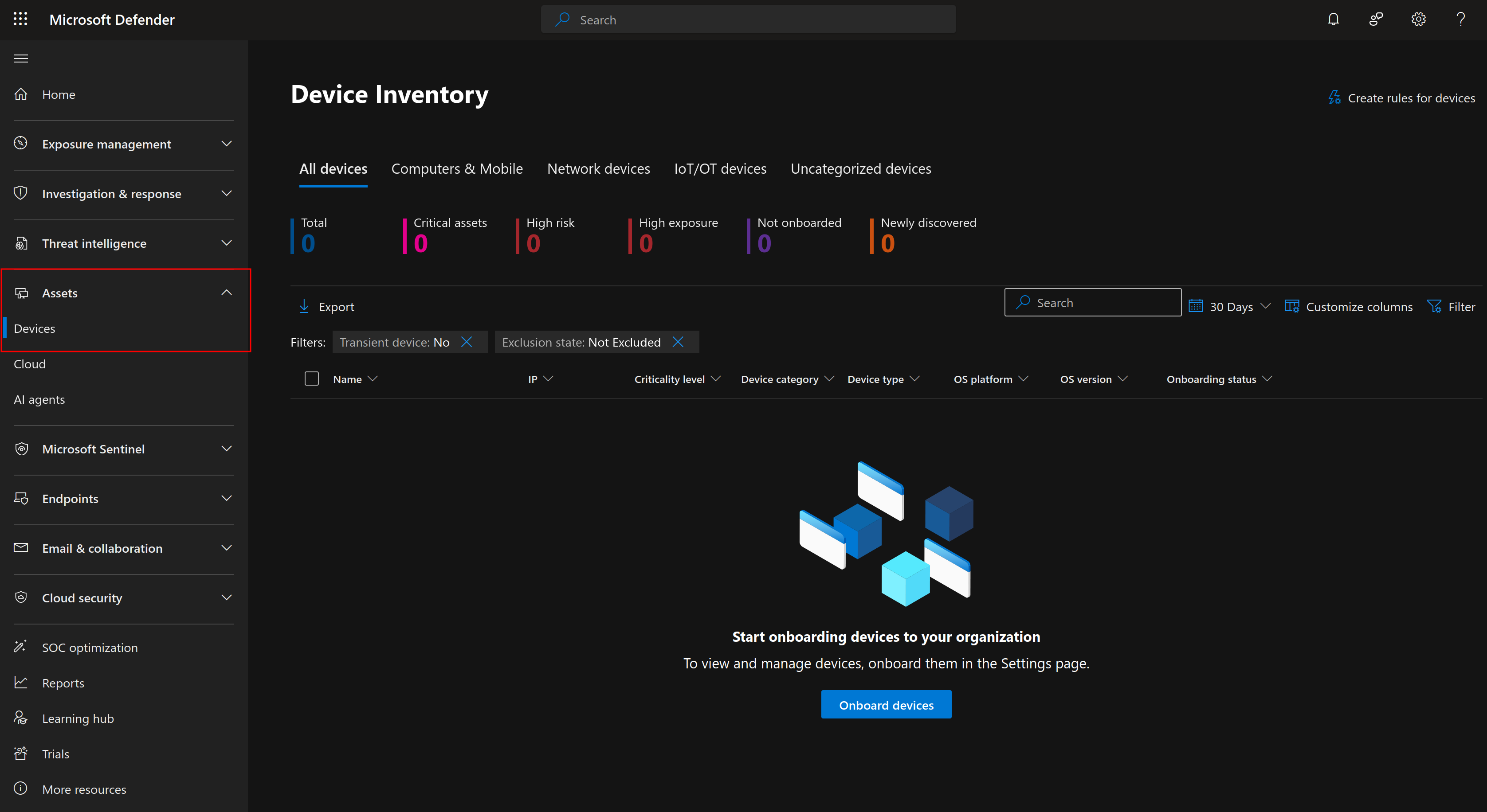 Once your license has been activated, you should have a new section on the Microsoft Defender portal to manage your devices. At the moment it will look quite empty.